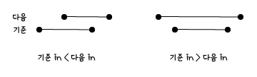 기준으로 선택한 자동차의 나가는 시간과 다음 자동차의 들어오는 시간을 비교해야 하는데 나가는 순으로 정렬되어 있다면 위 경우 처럼 다음 자동차의 나가는 시간이 기준 자동차의 나가는 시간보다 앞서는 경우는 계산하지 않아도 되기 때문이다.